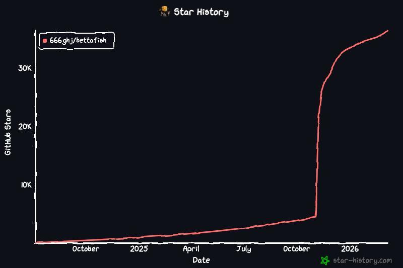 随后,BettaFish的GitHub页面开始出现明显的流量爆发,Star数以惊人的速度增长——5K,10K,20K,30K……