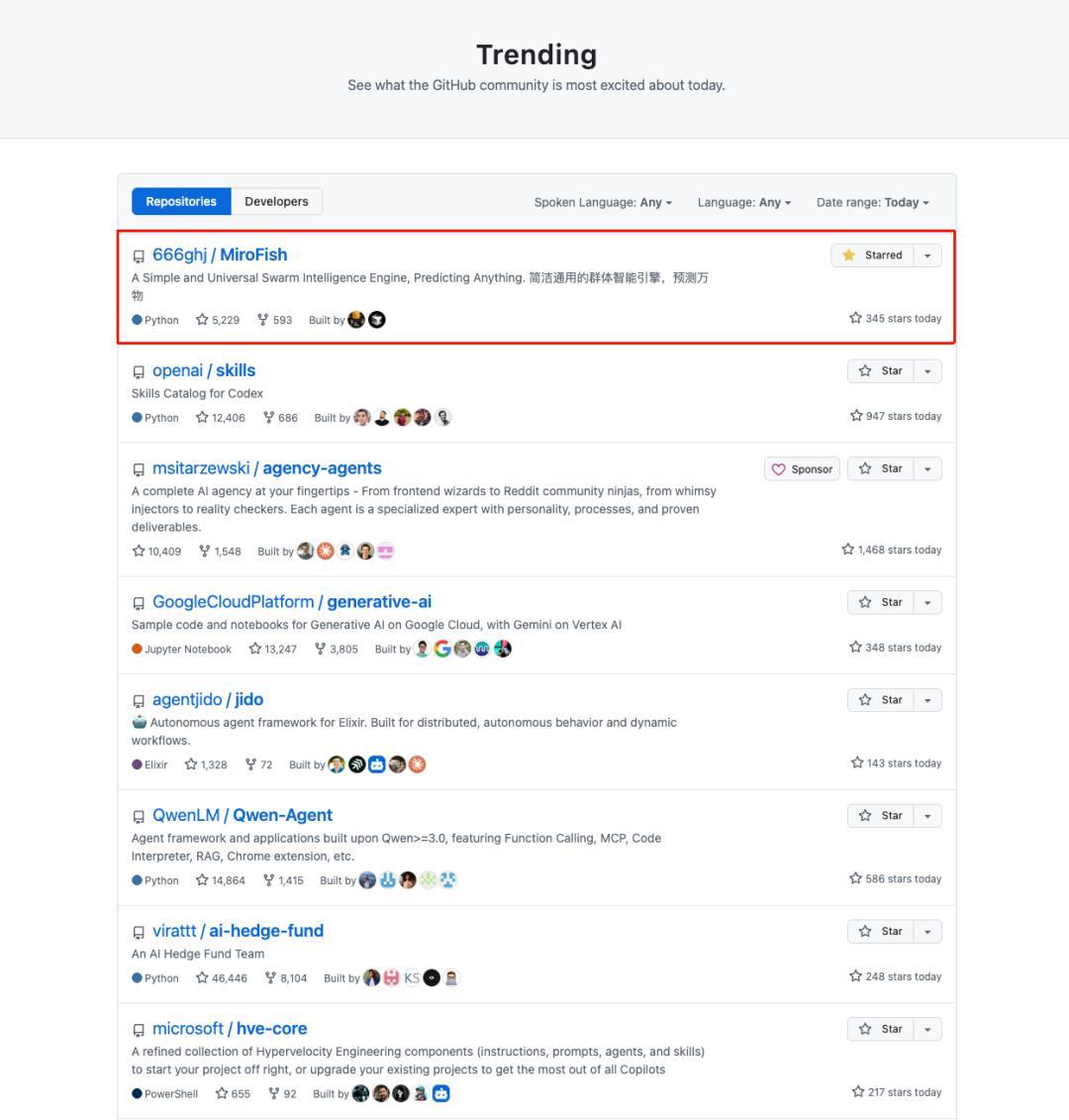 一觉醒来,国产开源AI项目MiroFish登顶GitHub趋势榜榜首!